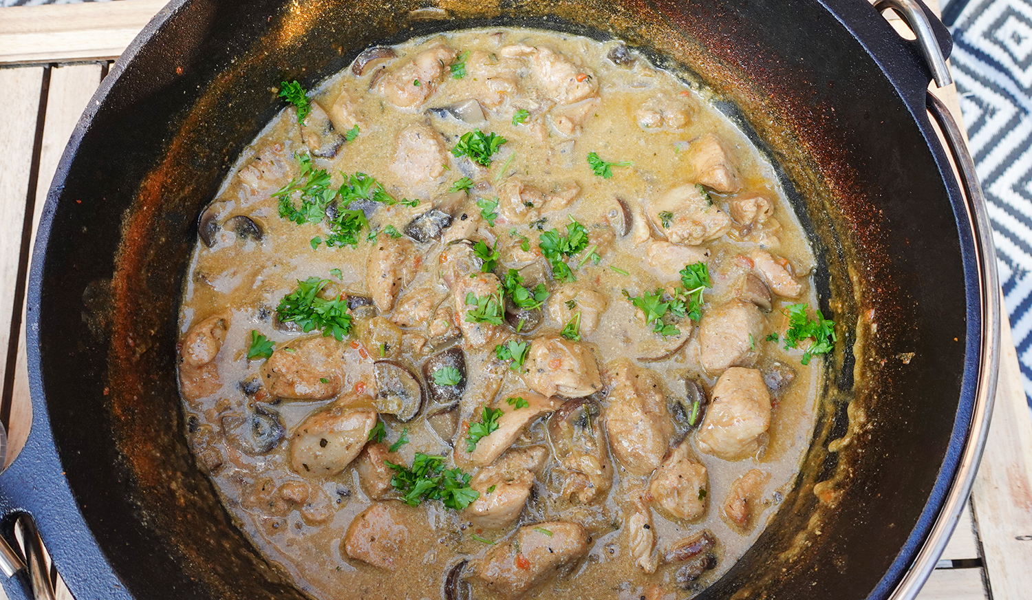1 Comment in Beilage, dutch oven, Familiengerichte, grill, Hauptgericht Jägertopf aus dem Dutch Oven – cremig, würzig, voller Protein & Low(er) Carb by Melanie Mai 2, 2025, 19:36