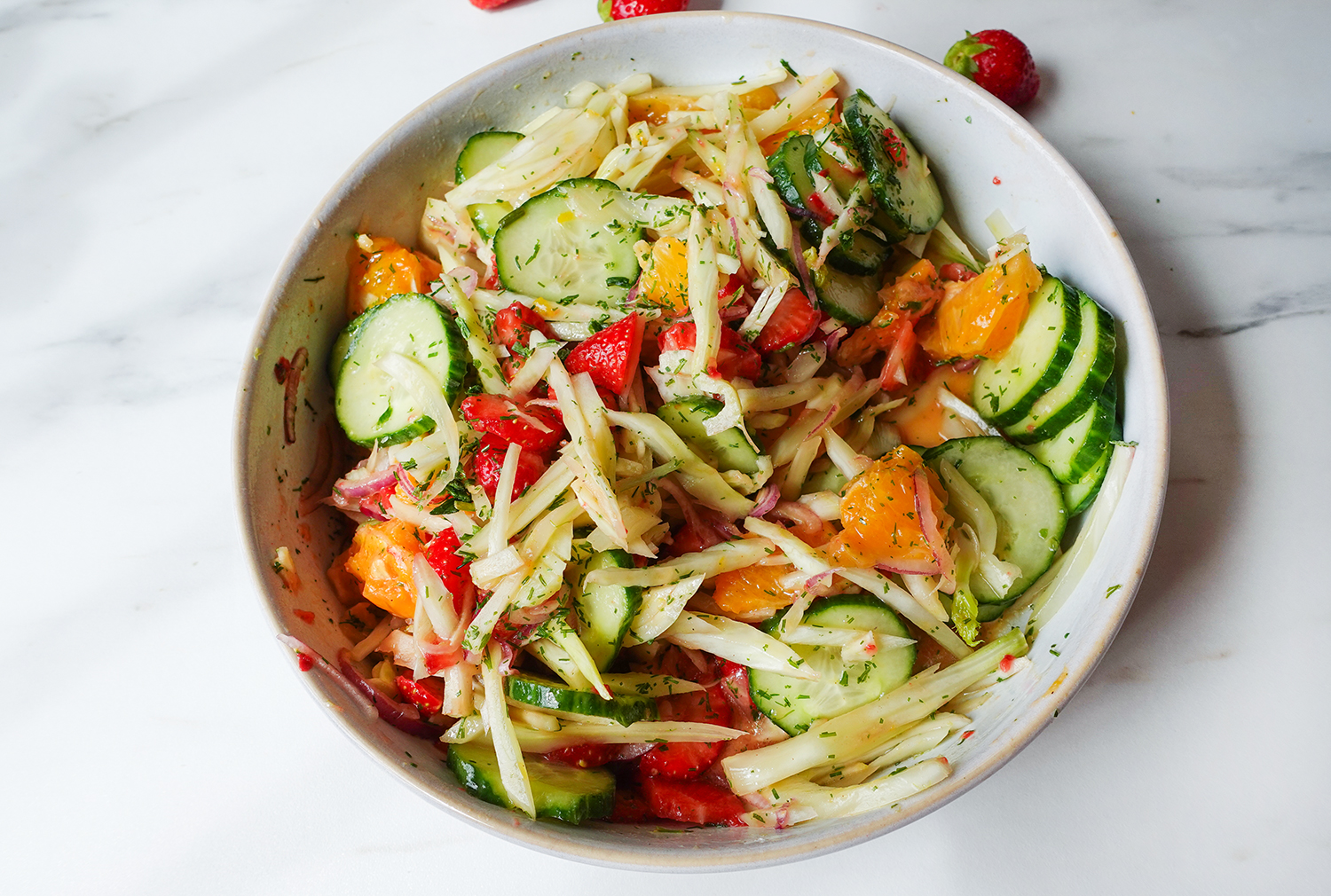 1 Comment in Beilage, Salat Fruchtiger Fenchelsalat mit Erdbeeren & Orangen – sommerlich frisch & schnell gemacht! by Melanie Juli 9, 2025, 08:38