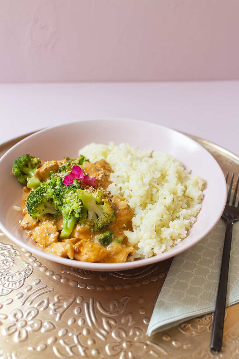 Derweil den Brokkoli in Röschen schneiden und in Salzwasser garen. Das Wasser abgießen, dabei 150ml auffangen. Zusammen mit dem Brokkoli in die Pfanne geben, dann Sahne, Xylit und Gemüsebrühe hinzugeben und weiter braten, bis die Soße andickt.