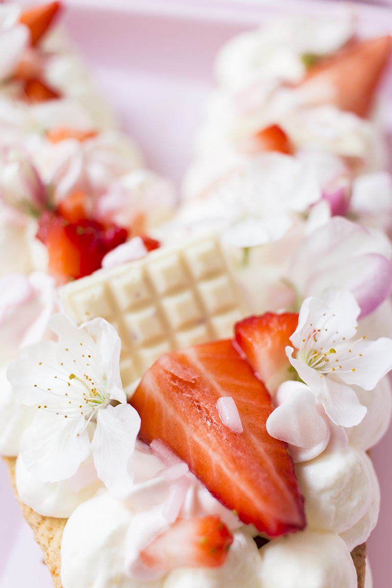 Für die Füllung die Sahne mit Xylit aufschlagen, dann Schmand und den Zitronensaft unterrühren. Die Masse in einen Spritzbeutel mit offener Spritztülle (z.B. Wilton 1A*) füllen, dann auf den ersten Buchstaben auftragen.