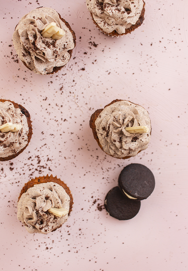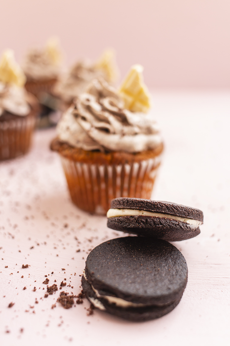 Die Eier trennen und das Eiweiß mit einer Prise Salz steif schlagen. Die restlichen Zutaten vermengen , dann den Eischnee und die zerkleinerten Oreo Kekse unterheben. Den Teig nun in Muffinförmchen füllen, anschließend für ca. 20 Minuten backen (nach ca. 10 Minuten locker mit Alufolie abdecken, damit sie nicht zu braun werden.