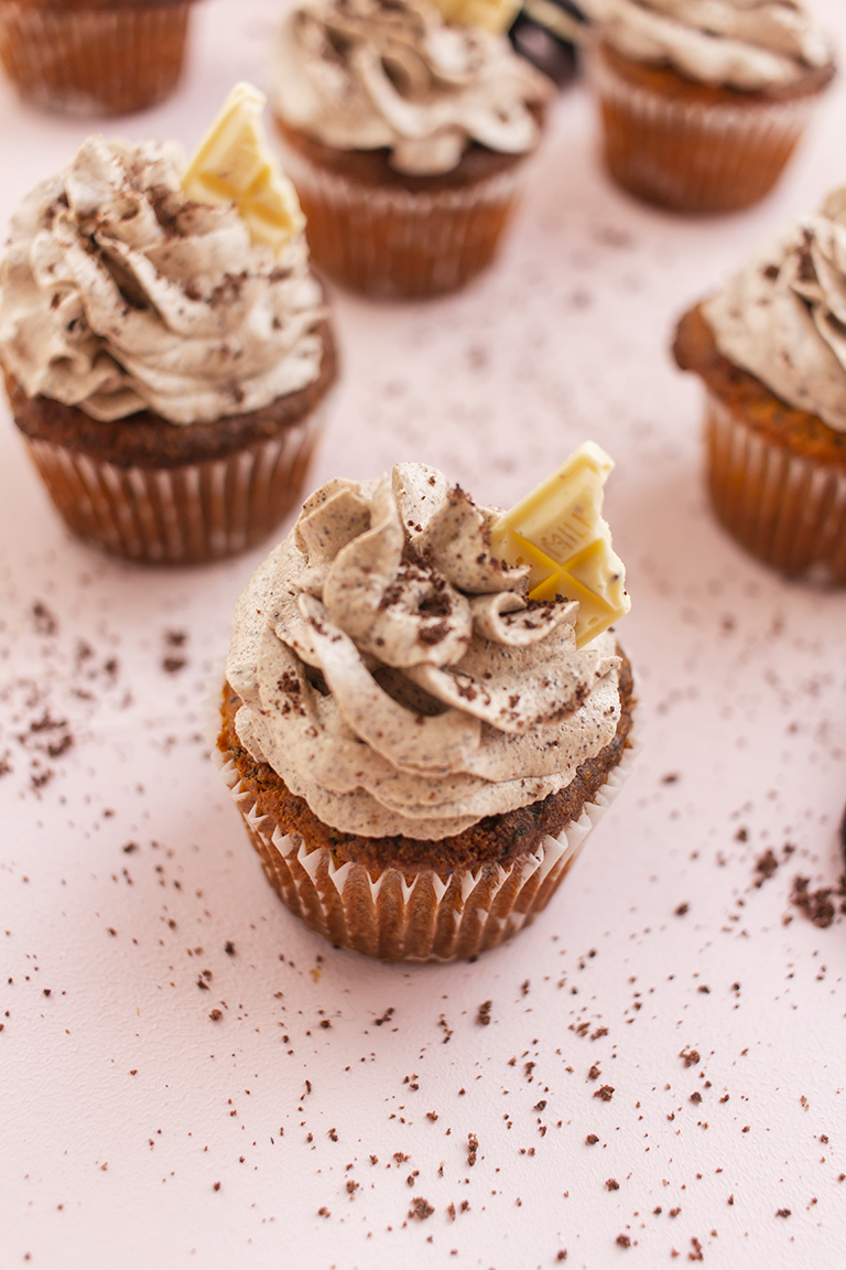 Nun in einen Spritzbeutel (oder Gefrierbeutel) füllen und auf die Cupcakes auftragen (ich habe die 2D Spritztülle von Wilton* benutzt).