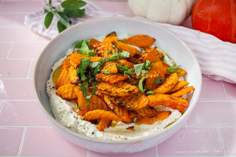Gerösteter Butternut Kürbis (mit whipped Feta)