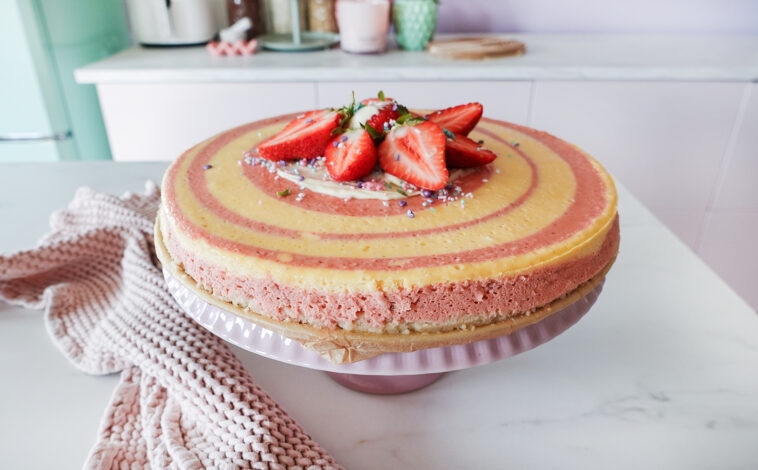 Entdecke den ultimativen Low-Carb Erdbeer Zebra Cheesecake – Ein Traum in Rot und Weiß!