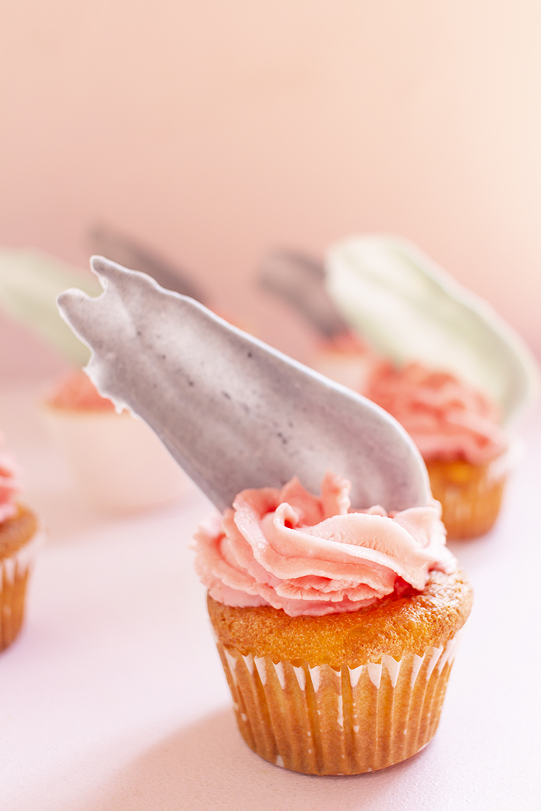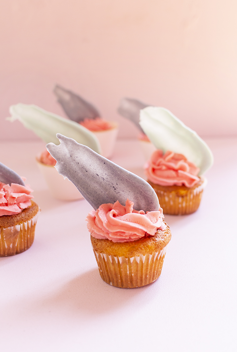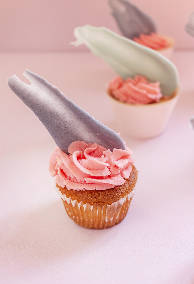 Für das Frosting das Xylit in einem Mixer klein mahlen und die Butter schmelzen. Dann mit dem Puderxylit schaumig schlagen. Dann mit dem Frischkäse und Lebensmittelfarbe nach Geschmack vermengen. In einen Spritzbeutel füllen und auf die Muffins auftragen. Zum Schluß mit der Schokolade dekorieren.