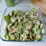 Ich liebe es, im Sommer einfache und schnelle Gerichte auf den Tisch zu bringen, die nicht nur herrlich erfrischen, sondern auch ohne schlechtes Gewissen genossen werden können. Dieser Salat ist in wenigen Minuten zubereitet, low carb, proteinreich und voller sommerlicher Aromen – ideal als Beilage zum Grillen, als leichtes Mittagessen oder für dein nächstes Picknick im Grünen.