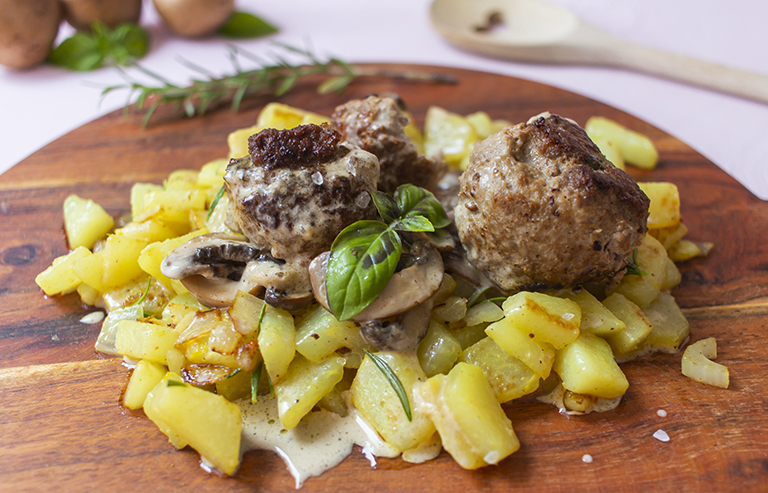 Die Jägerhackbällchen noch mal erwärmen, dann zusammen mit den Bratkohlrabi servieren und genießen, guten Appetit!