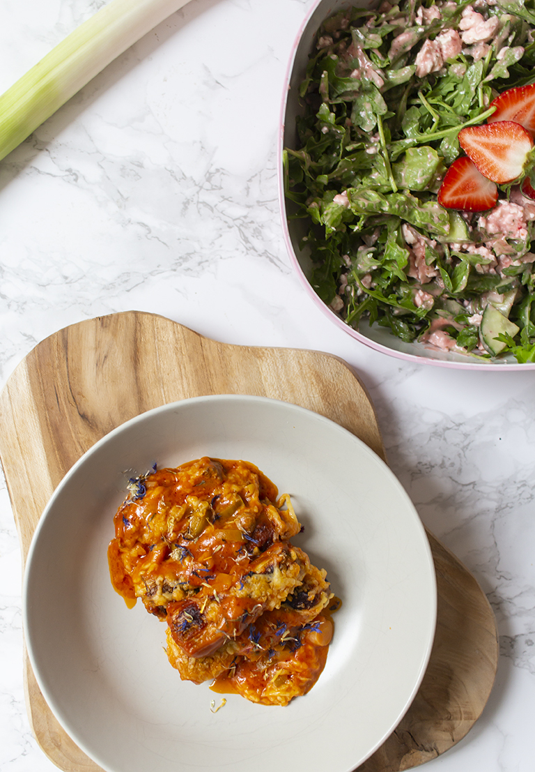 Dann die Soße über die Lauch Canneloni gießen und für ca. 30 Minuten in den Backofen geben.