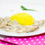 Low Carb Hähnchen in Käsesoße zu Curry Blumenkohlreis