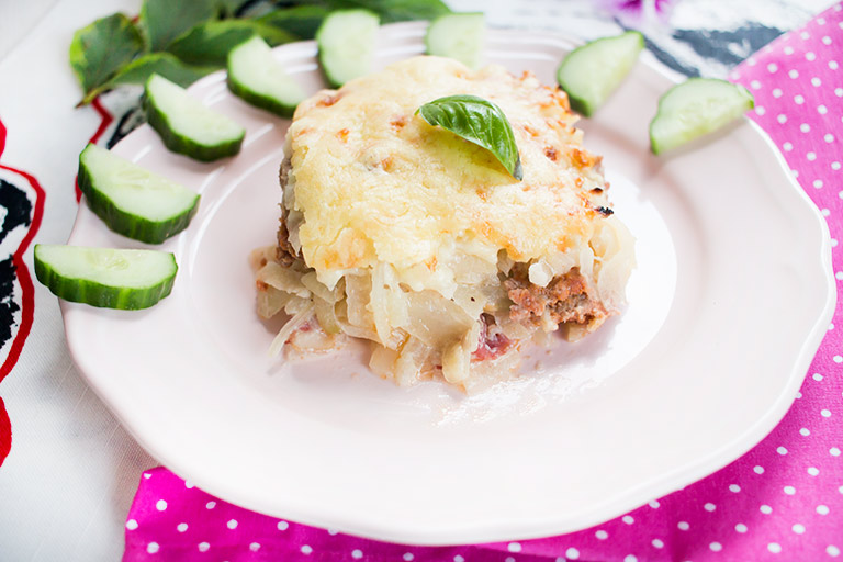 Auf dem Hackfleisch die zweite Hälfte Kohlrabi verteilen.