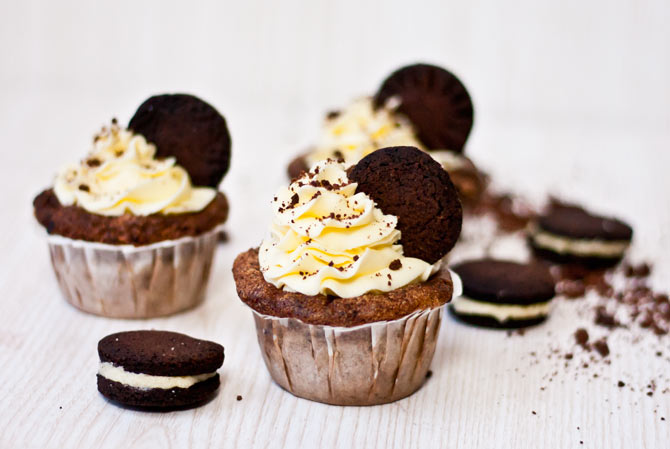 Butter schmelzen und mit den restlichen Zutaten, bis auf die Schokolade und Plätzchen miteinander vermengen. Die Schokolade und Oreo Kekse klein hacken und gemeinsam mit dem Eischnee unter den Teig heben. In Muffinförmchen füllen und für ca. 25 Minuten backen (sollte nach der Backzeit der Teig noch nicht fest sein, am Besten mit Alufolie abdecken und noch etwas weiter backen).