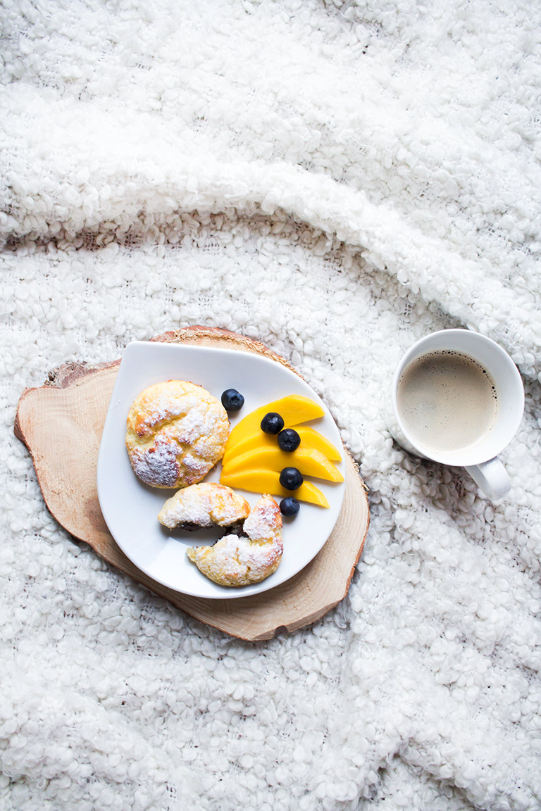 - Für die Füllung: 6 TL zuckerfreie Nutella* oder weiße Schokolade Aufstrich*, zuckerfreie Marmelade*, selbstgemachte Haselnuss-Mandel-Schoko Butter (Rezept) oder andere Füllung nach Wahl