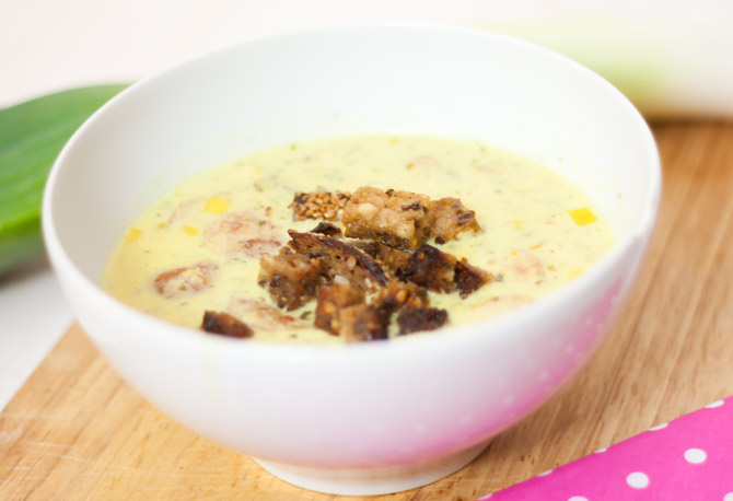 (Wer mag kann noch Eiweißbrot zusammen mit Knoblauch in Öl anbraten und über die Suppe geben, so wie ich es gemacht habe)