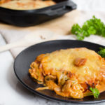 Nachdem der Wrap im Ofen goldbraun gebacken ist, lass ihn kurz abkühlen. Drehe ihn dann vorsichtig auf einen Teller um und ziehe das Backpapier langsam ab. Sollte das Backpapier leicht kleben, hilft es, es vorsichtig abzuziehen, während der Wrap abkühlt. - Servieren und genießen