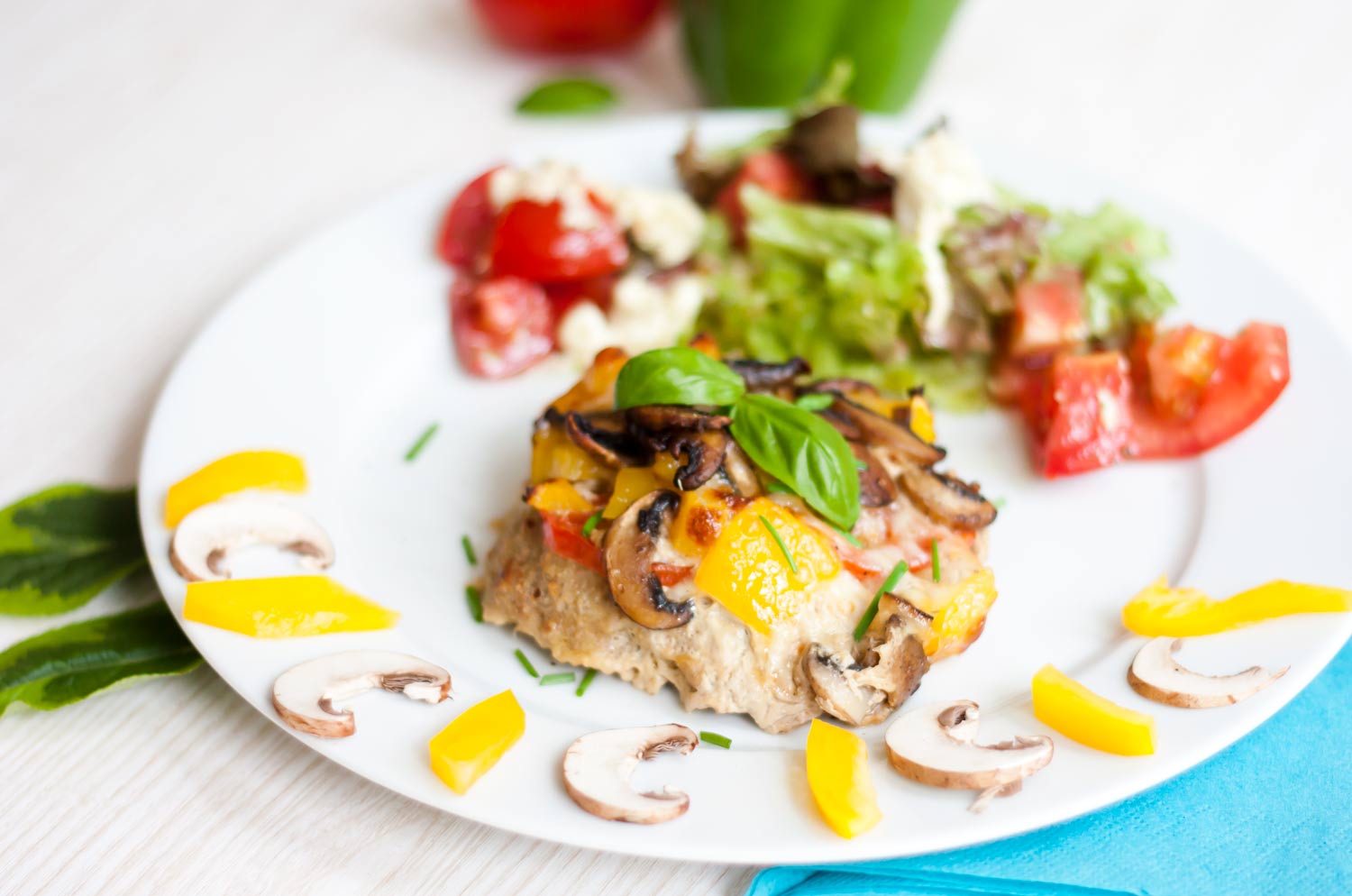 Die Tomaten in Scheiben schneiden, die Paprika würfeln und den Mozarella in Scheiben schneiden. Anschließend zuerst das Hackfleisch mit dem restlichen Grana Padano bestreuen, dann mit Tomaten belegen, die Paprika verteilen, die Mozarella Scheiben oben drauf geben und zum Schluss die Champignons verteilen. Die FrikadellenPizza für ca. 30 Minuten in den Backofen geben, anschließend mit Schnittlauch und Basilikum bestreuen. Servieren und genießen! Guten Appetit!