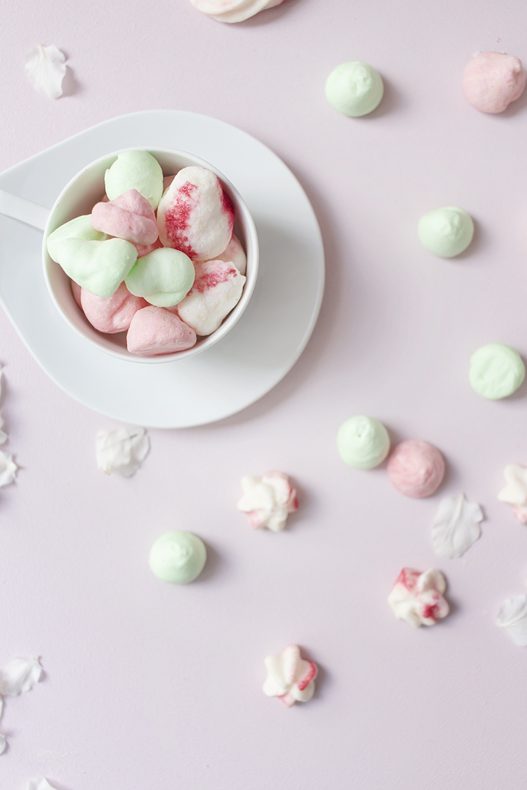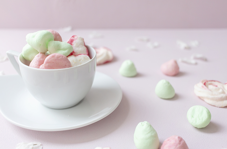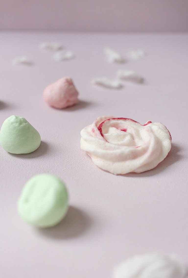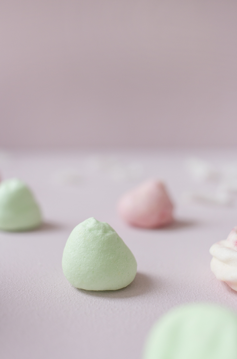 Anschließend Zitronensaft, Backpulver, Aroma & Farbe nach Wunsch und das Erythrit löffelweise hinzugeben. Derweil bei mittlerer Stufe weiter schlagen. Solange rühren, bis die Masse glänzt und sich das Erythrit komplett aufgelöst hat (testen indem man die Masse zwischen den Fingern reibt).