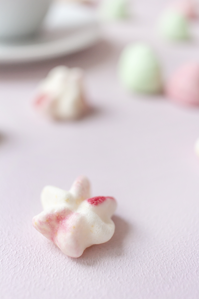 Dann den Ofen ausschalten und die Baiser für ca. 1 Stunde dort abkühlen lassen. Aus dem Ofen holen und vorsichtig vom Backpapier lösen.