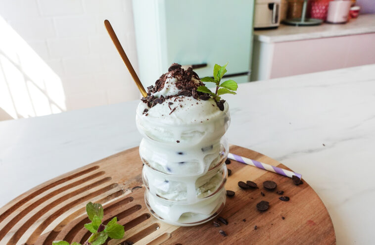- Voilà, deine selbstgemachte Pfefferminz-Schoko-Eiscreme ist fertig! Serviere sie sofort und genieße den erfrischenden Geschmack von Pfefferminze kombiniert mit den köstlichen Schokodrops. Ein perfekter Genuss für heiße Sommertage oder einfach, wenn du Lust auf etwas Besonderes hast.