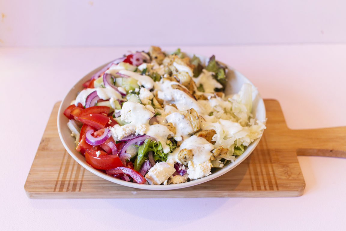Ein Gyrosteller vom Lieblingsgriechen ist natürlich schon was leckeres – im Sommer aber ziemlich mächtig und die Pommes (oder Reis) eignen sich natürlich auch nicht besonders gut für eine Low-Carb-Ernährung. Damit Du aber auf den Genuss nicht verzichten musst, habe ich heute eine richtig leckere Alternative mitgebracht: der Gyros-Salat. Er ist nicht nur köstlich und sättigend, sondern auch noch eine echte Proteinbombe! Wenn Du lieber die vegetarische Variante magst, kann ich dir Kichererbsen als Alternative empfehlen, die habe ich auch schon in meinem vegetarischen Cesar Salad (klick) verwendet und sie machen sich ganz super darin!