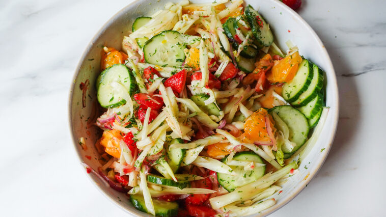 in Beilage, Salat Gurke-Melone-Salat mit Serrano und Mozzarella – Sommerlich leicht & figurfreundlich Weiterlesen