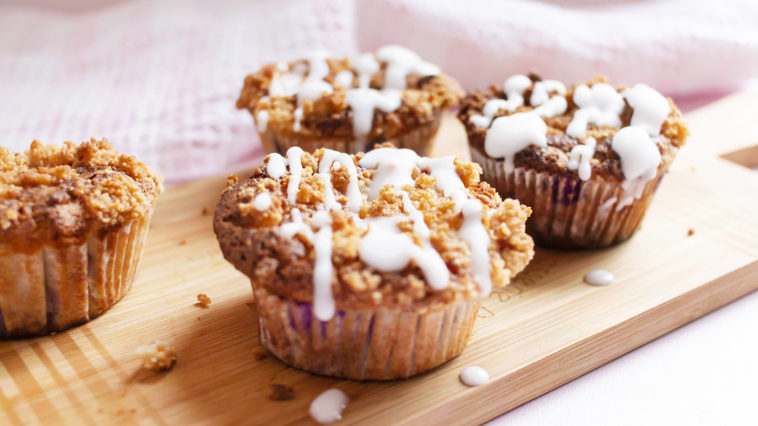 Kalorienarme Blaubeere Coffee Cake Muffins (low-carb, glutenfrei)