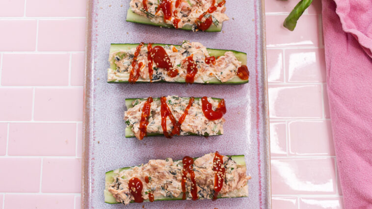 Der perfekte Low-Carb Snack: Gurken Schiffchen im Sushi Style!